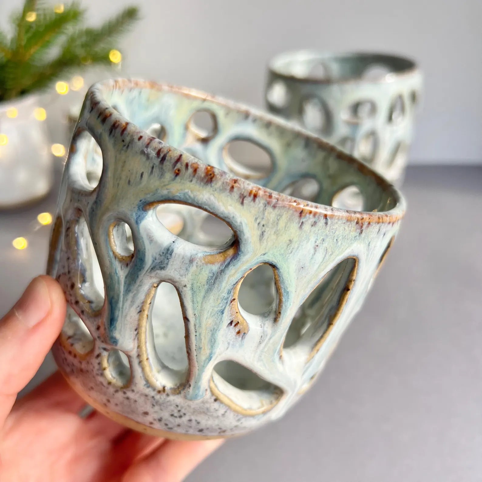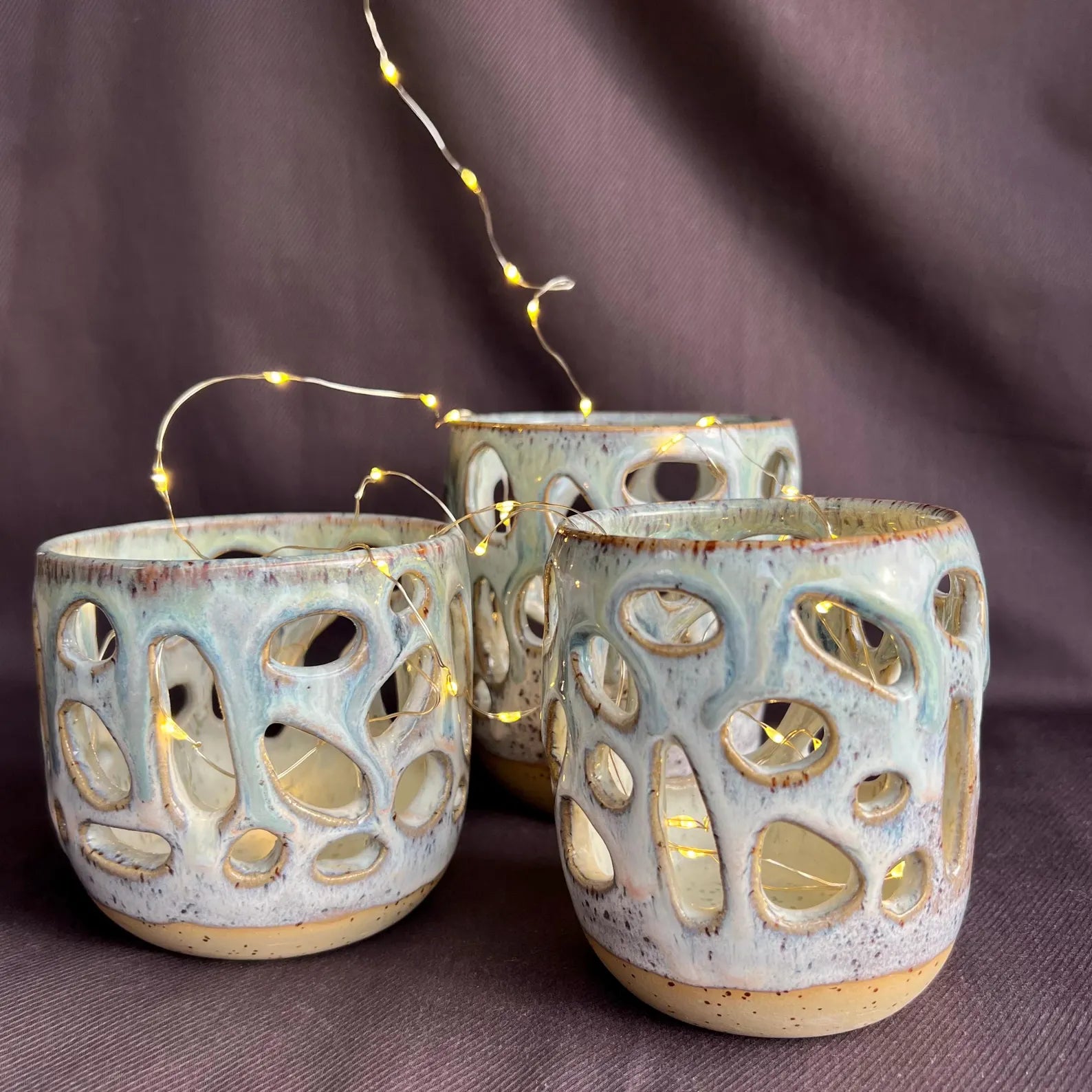 Radiet siltu, mājīgu atmosfēru savās mājās ar šo īpašo svečturi - laternu. Skaists keramikas trauks un jauks mājas dekors. Aizdedzinot sveci, gaisma maigi izgaismo telpu.