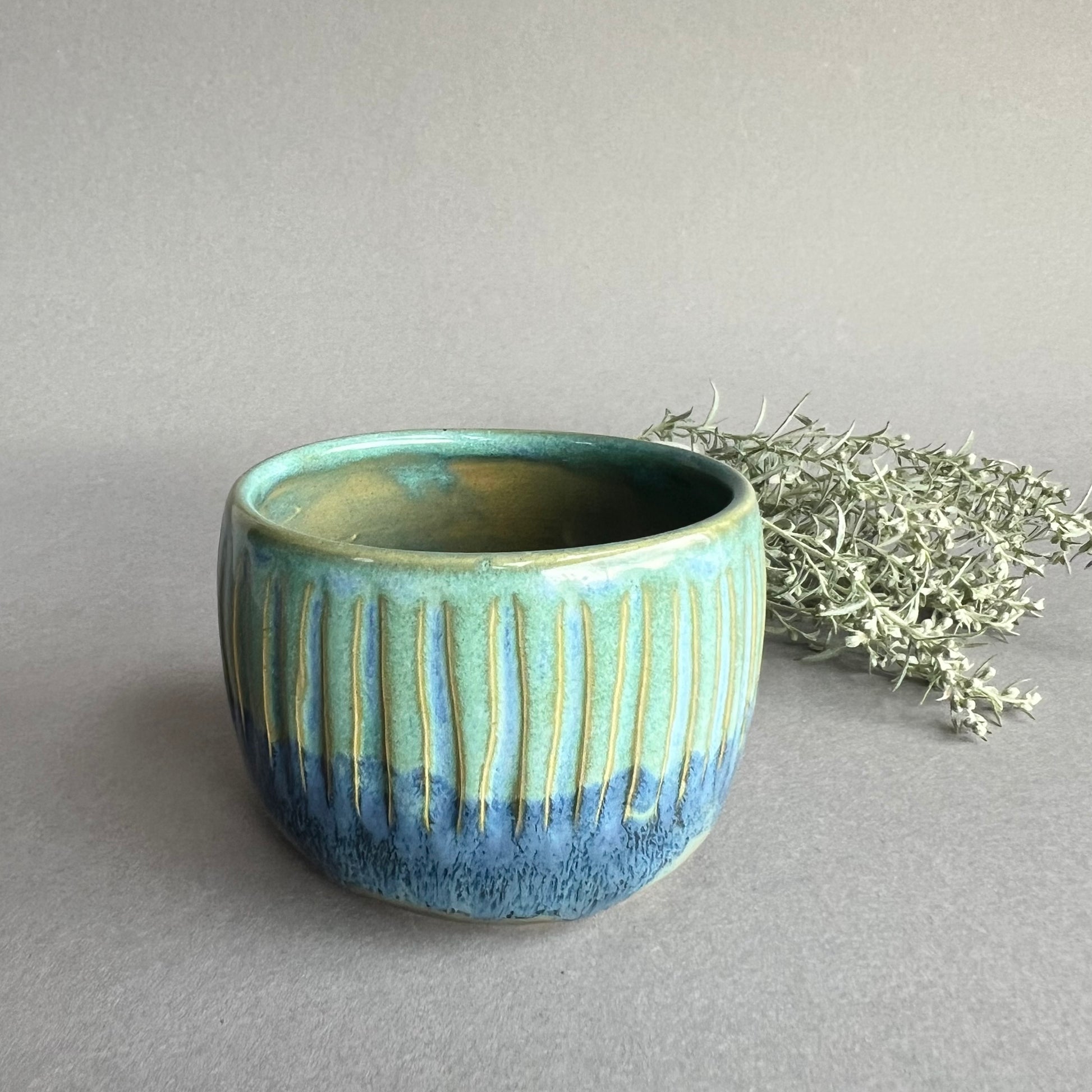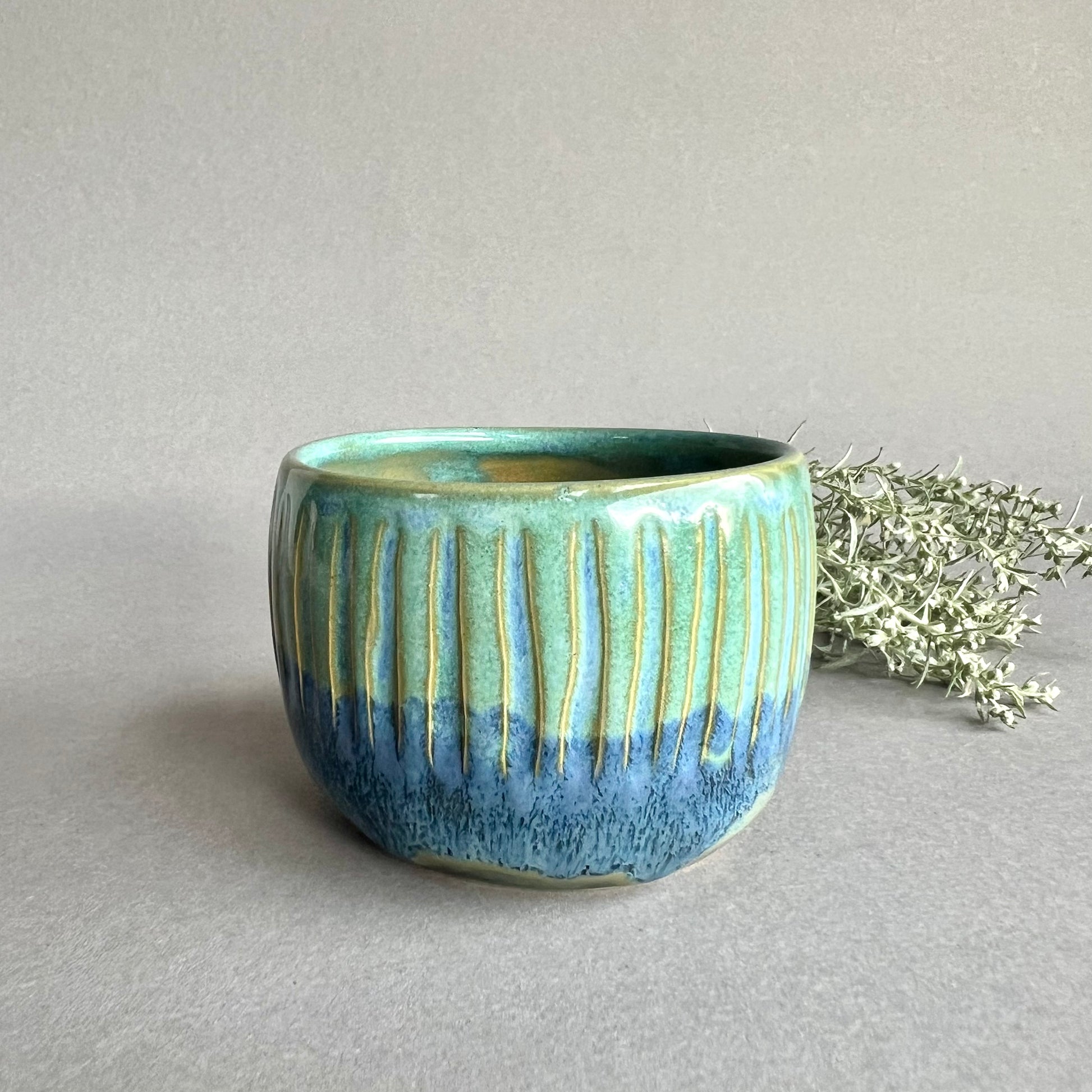 Neliela, ar rokām darināta glāzīte bez osas, ideāli piemērota karstajiem dzērieniem, kam nepieciešams siltums rokās. Izgatavota no akmens masas, nodrošinot ilgmūžību un siltuma noturību. Droša pārtikai.