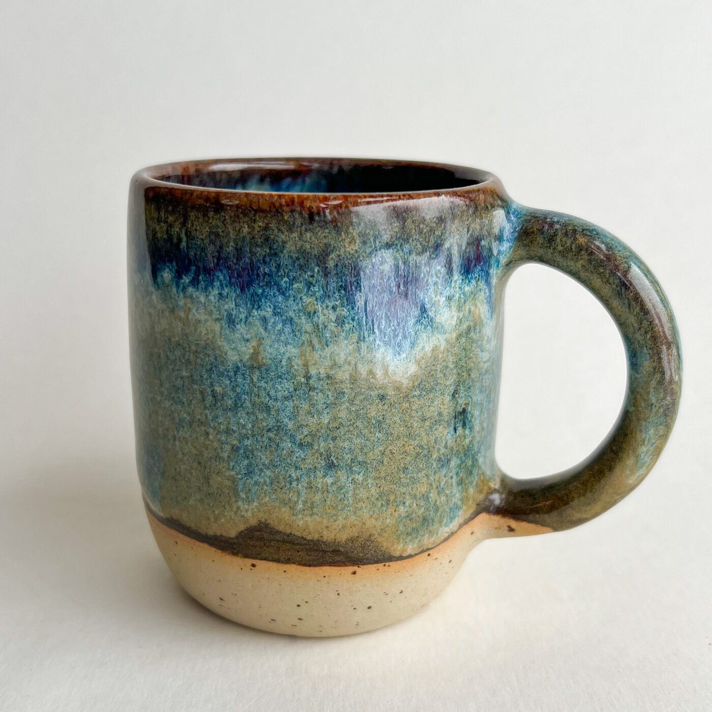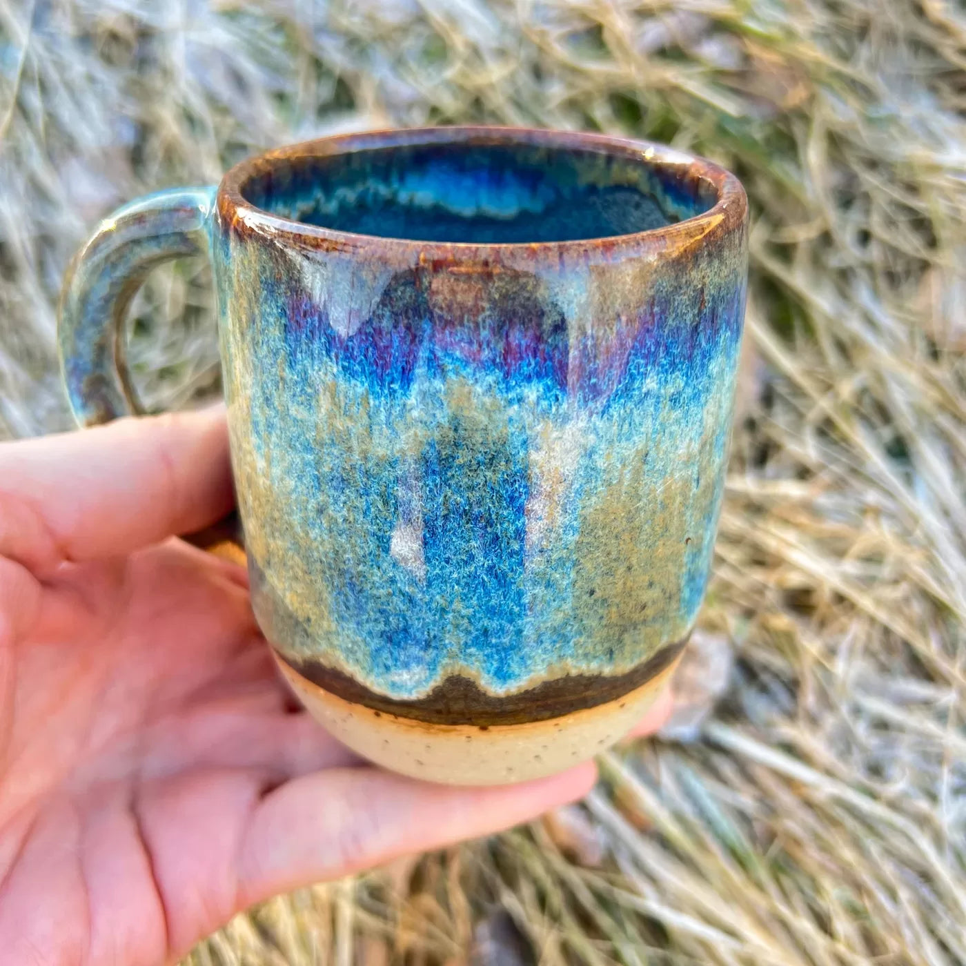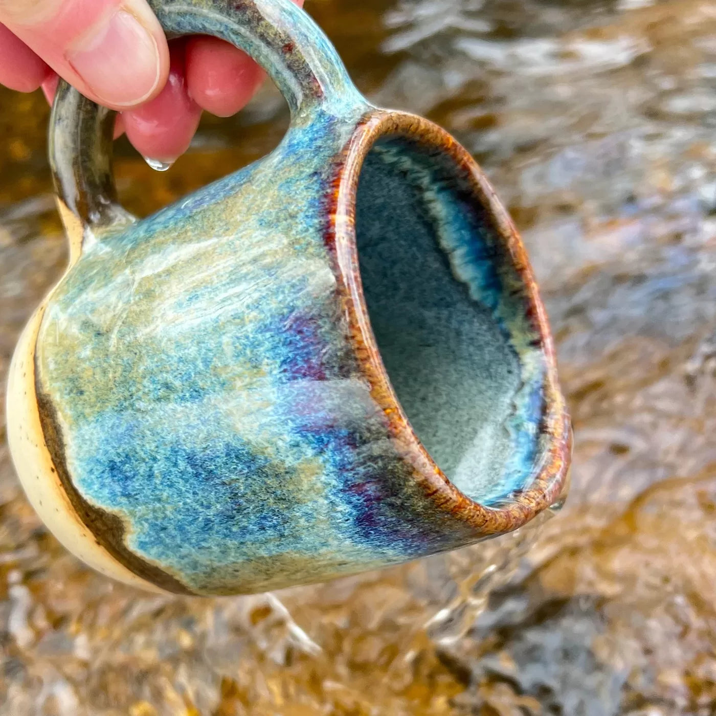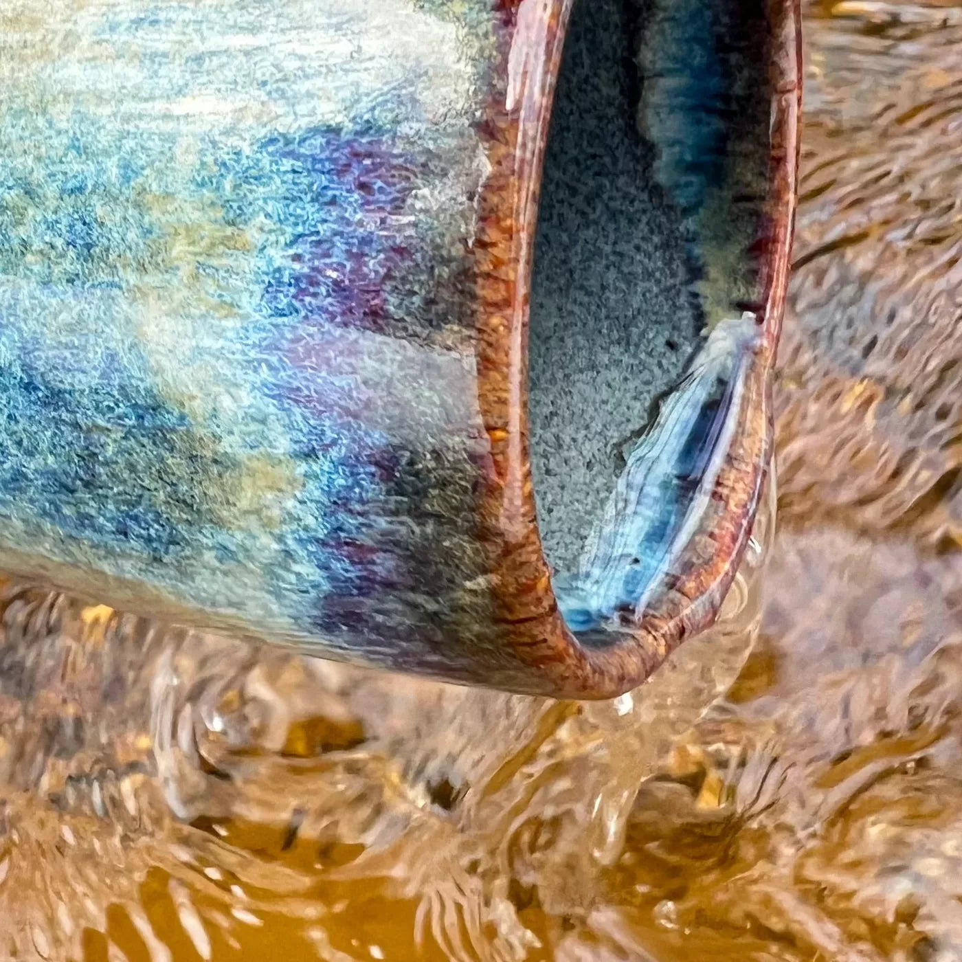 Ikdienas krūze - iedvesmojoties no dabas smalkā skaistuma, šī virpotā keramikas krūze apbur ar brūni ziliem toņiem, kas atgādina plūstošu strautu. Ideāla izvēle jūsu ikdienas kafijas vai tējas devai. Izgatavota no raibas akmens masas, nodrošinot komfortablu lietošanu un ilgmūžību. Droša pārtikai.