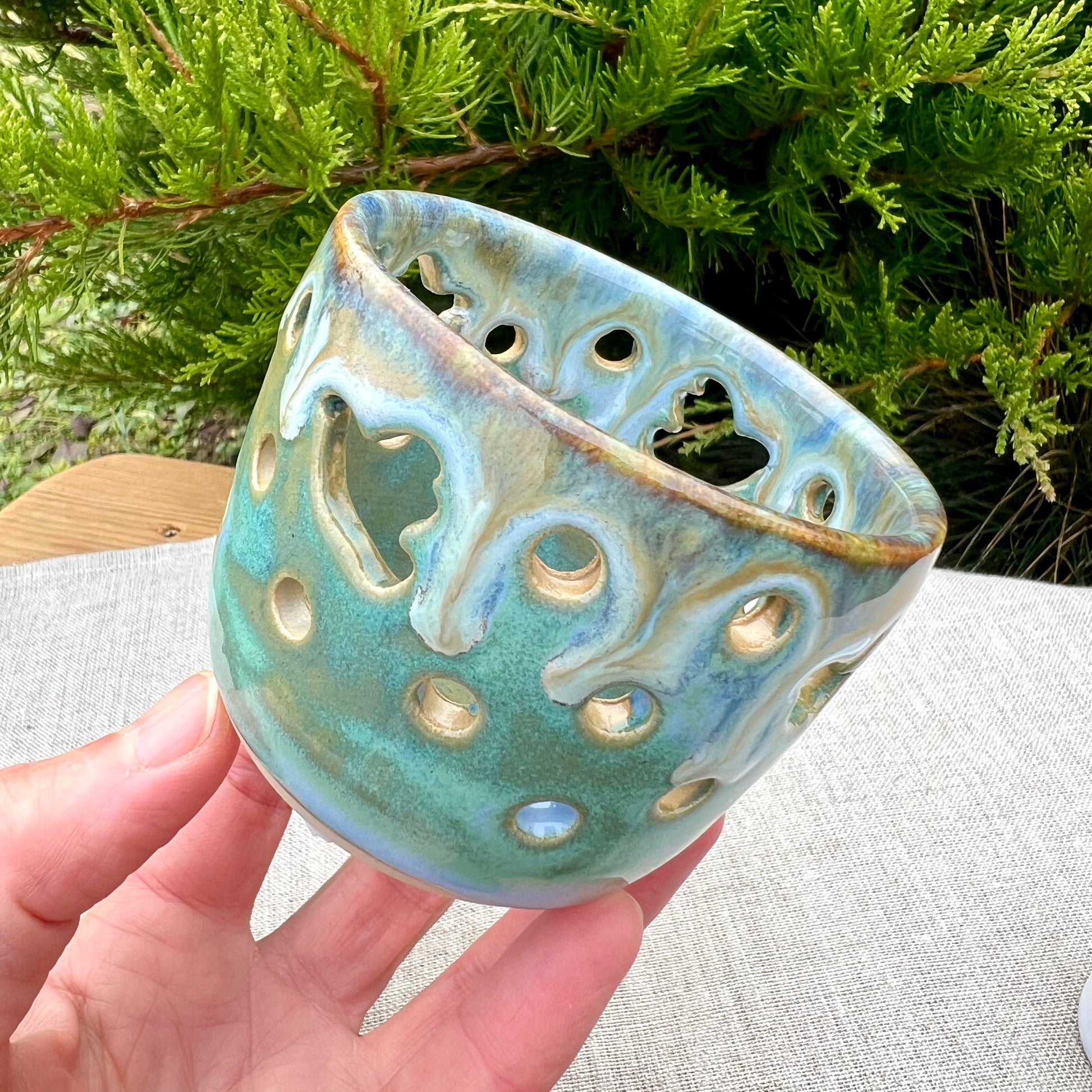 Radiet siltu, mājīgu atmosfēru savās mājās ar šo īpašo svečturi - laternu. Skaists keramikas trauks un jauks mājas dekors. Aizdedzinot sveci, gaisma maigi izgaismo telpu.