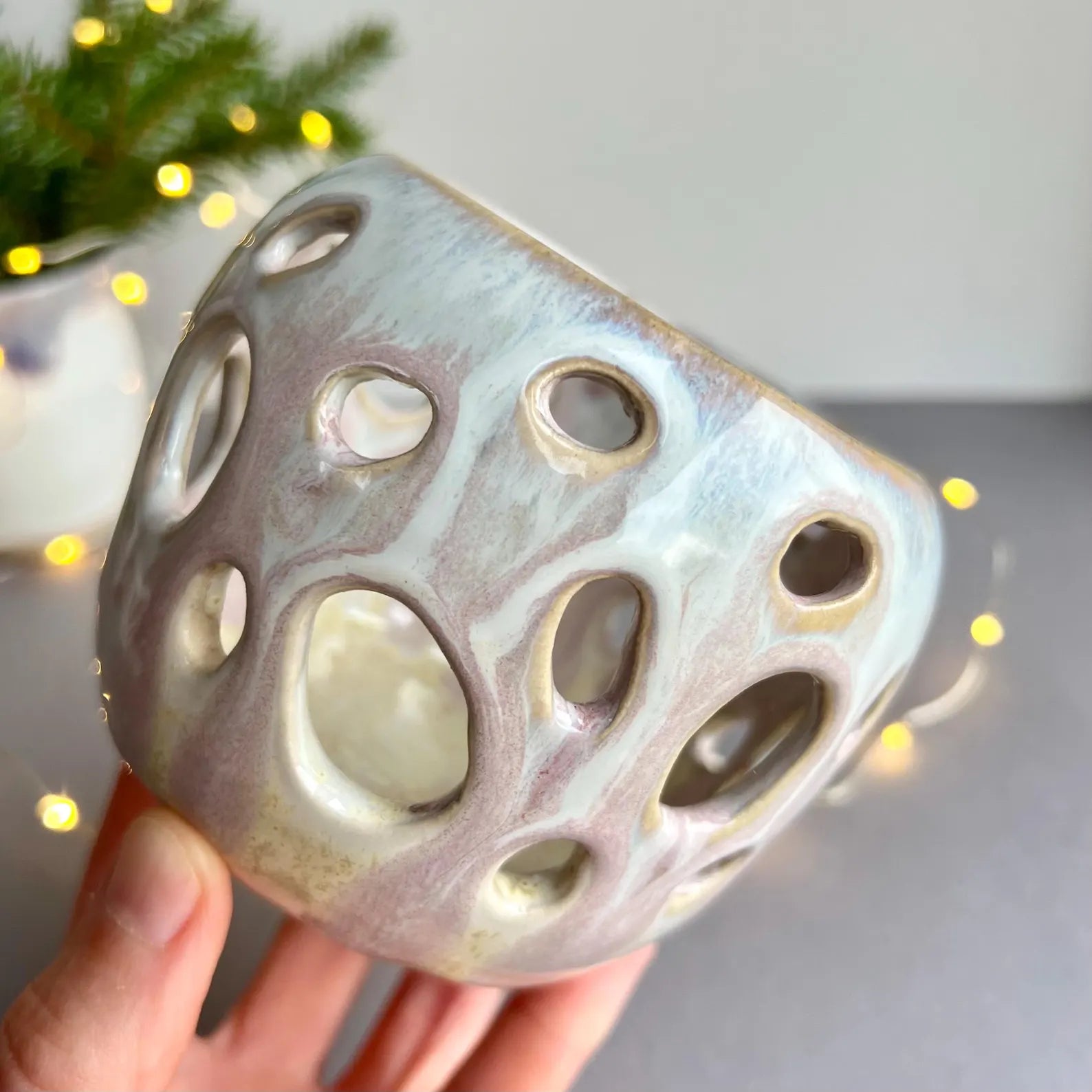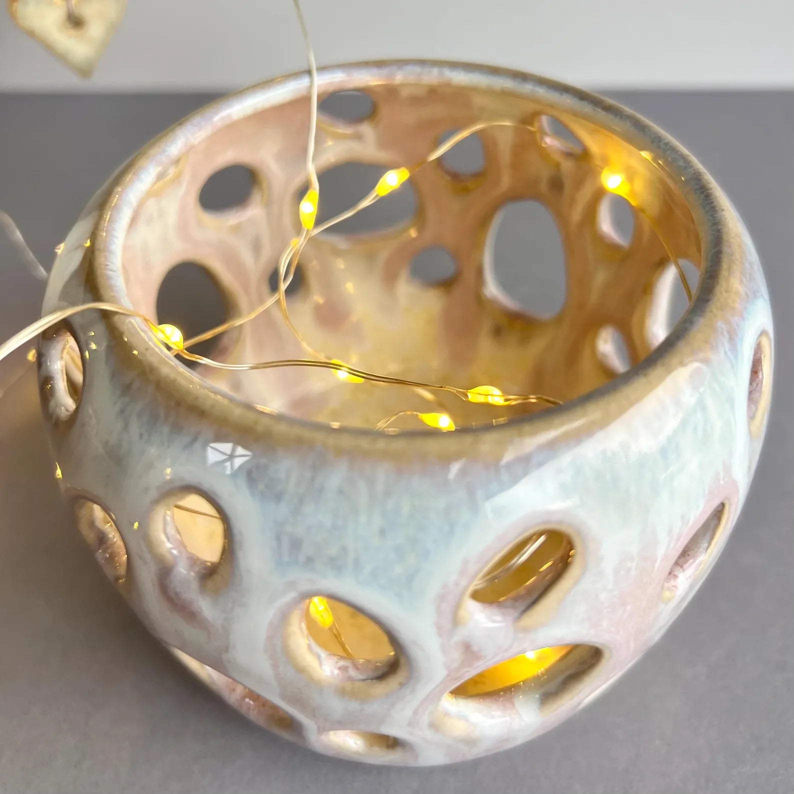 Radiet siltu, mājīgu atmosfēru savās mājās ar šo īpašo svečturi - laternu. Skaists keramikas trauks un jauks mājas dekors. Aizdedzinot sveci, gaisma maigi izgaismo telpu.