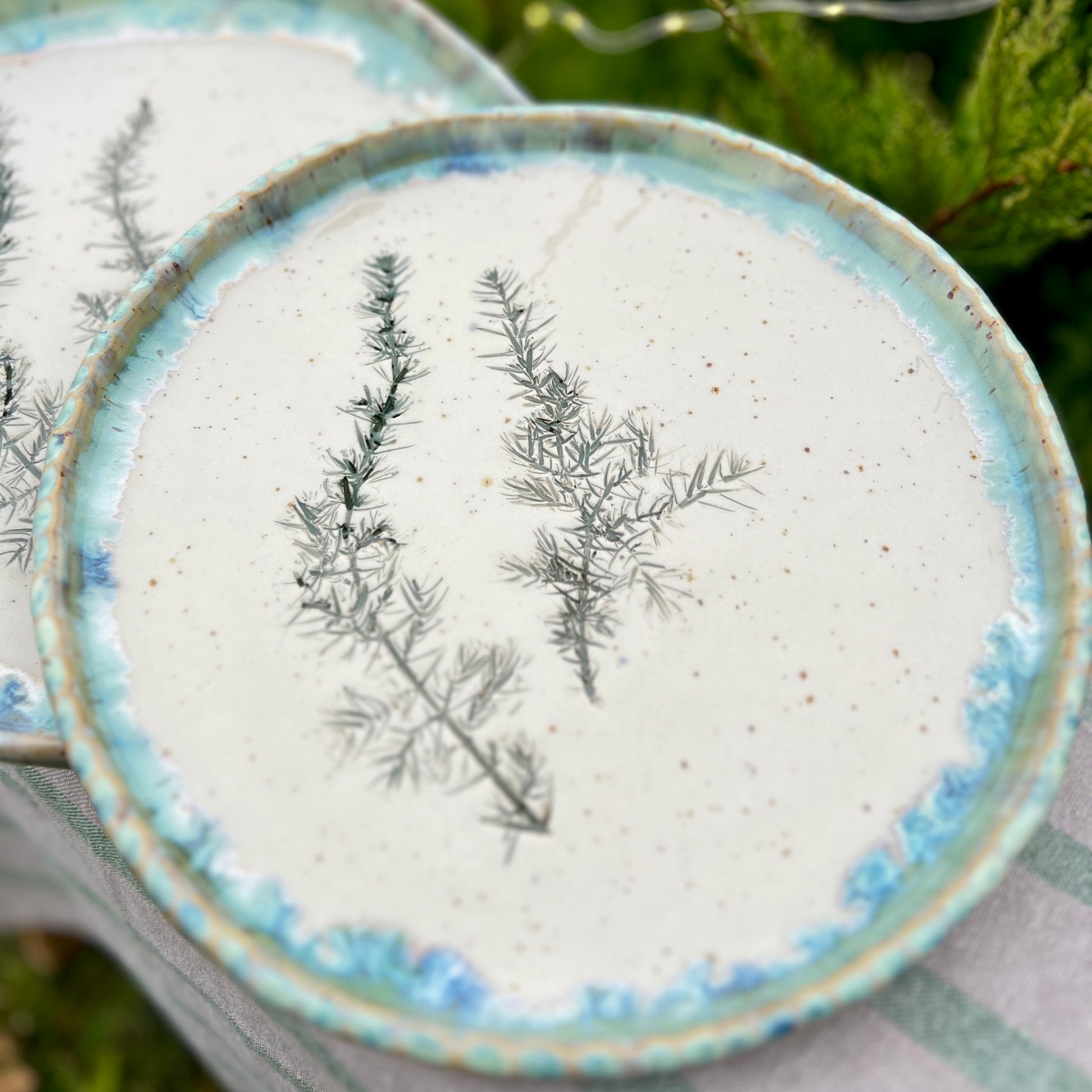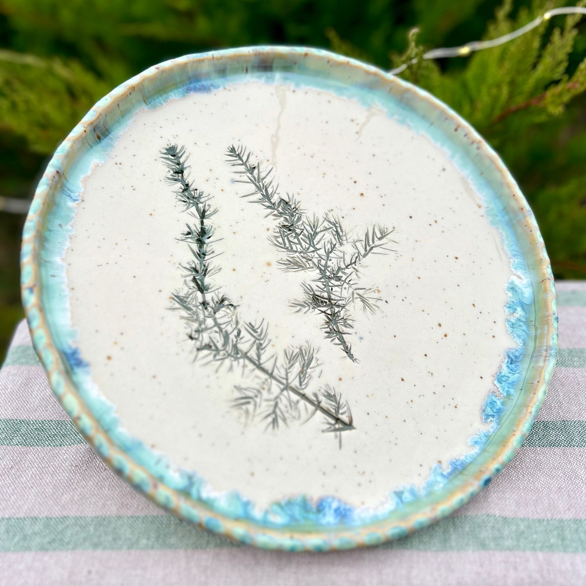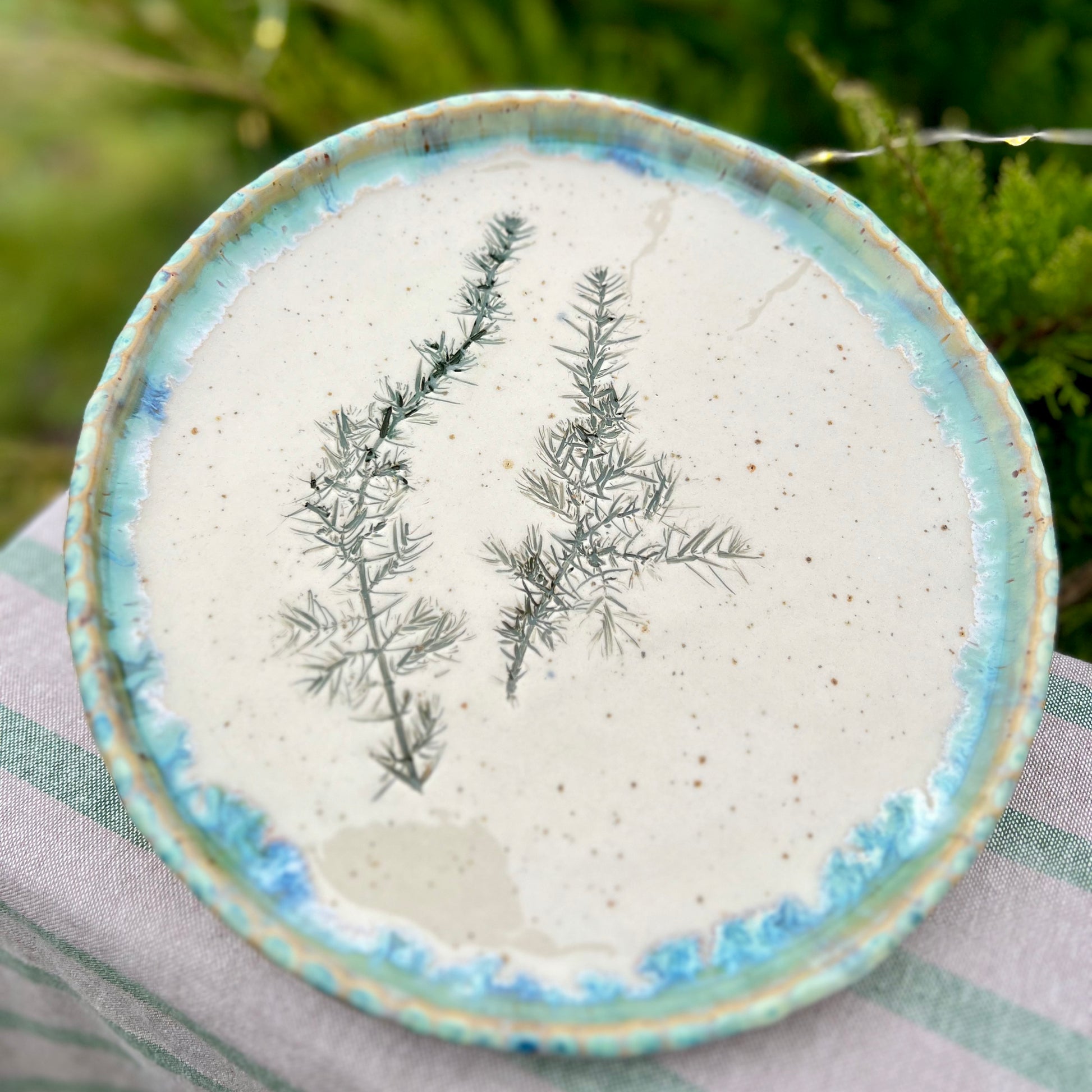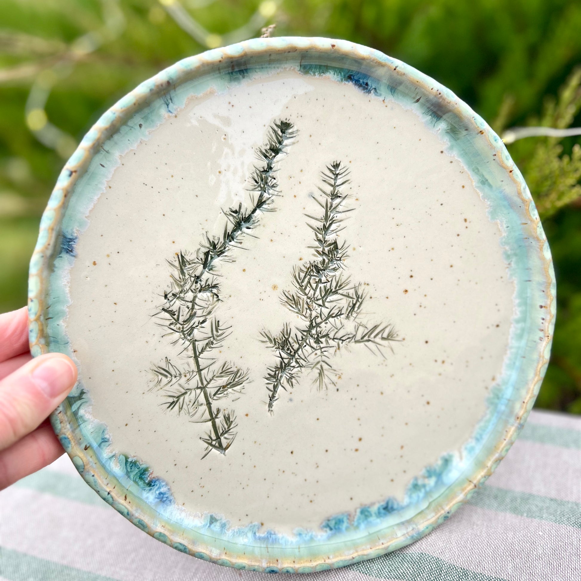 Šķīvis rotāts ar paegļa zaru rakstu – dabas elementu, kas iemūžināts mālā.