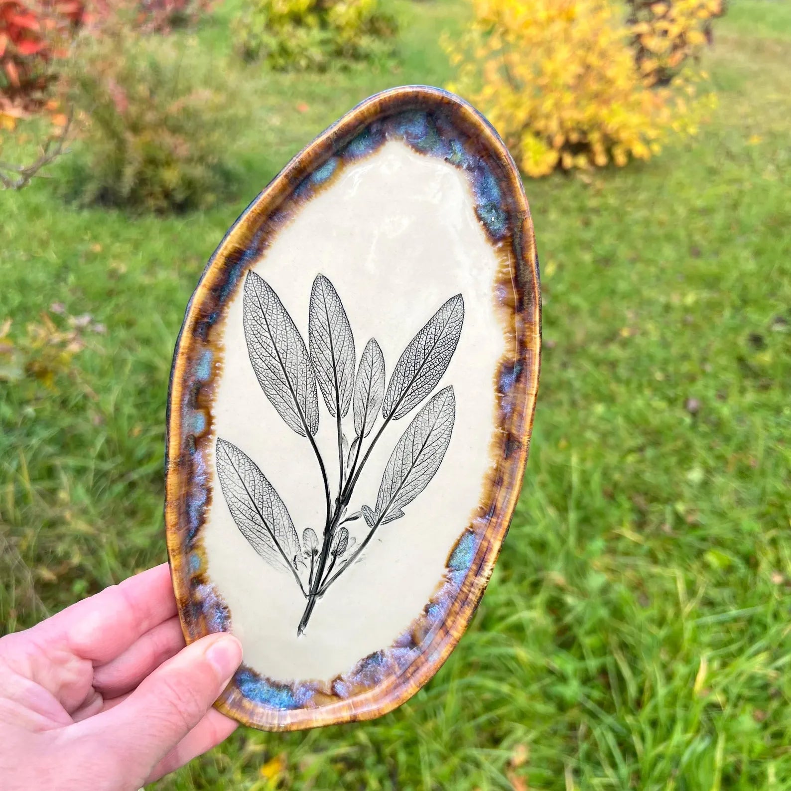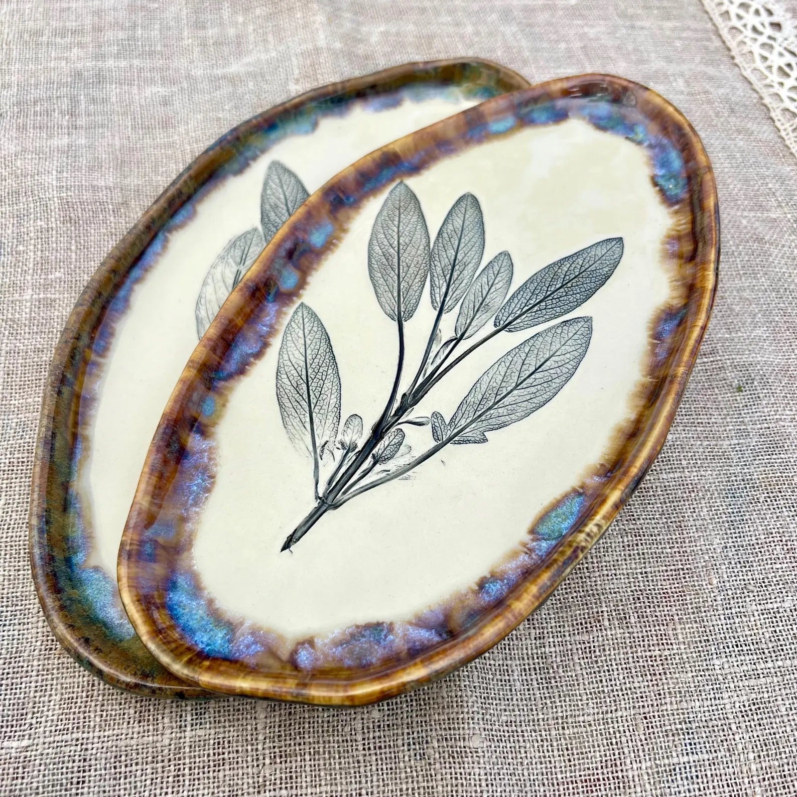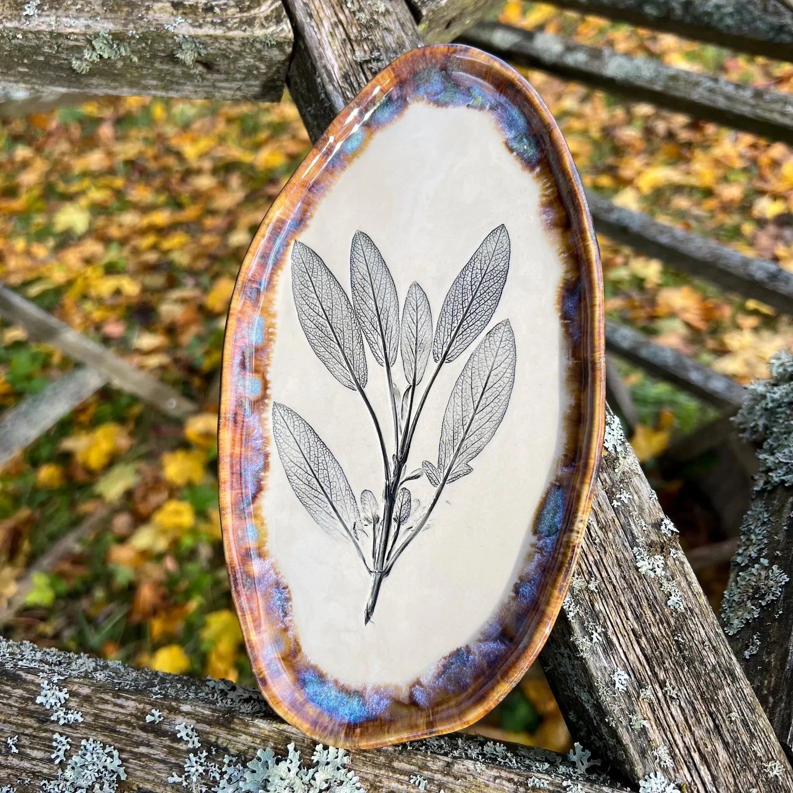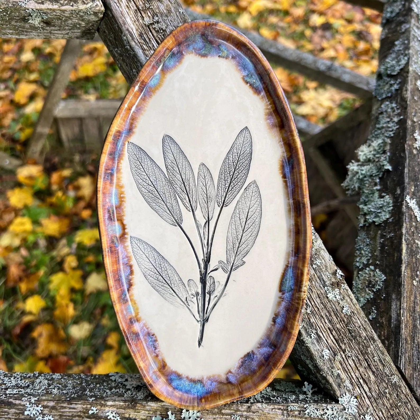 Ienesiet dabas skaistumu savā mājā ar šo servējamo šķīvi, kas rotāts ar ārstniecības salvijas dekoru.