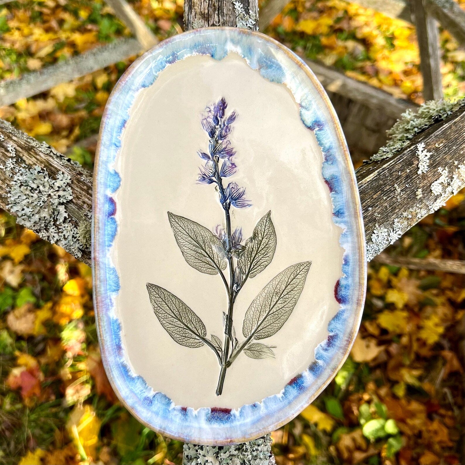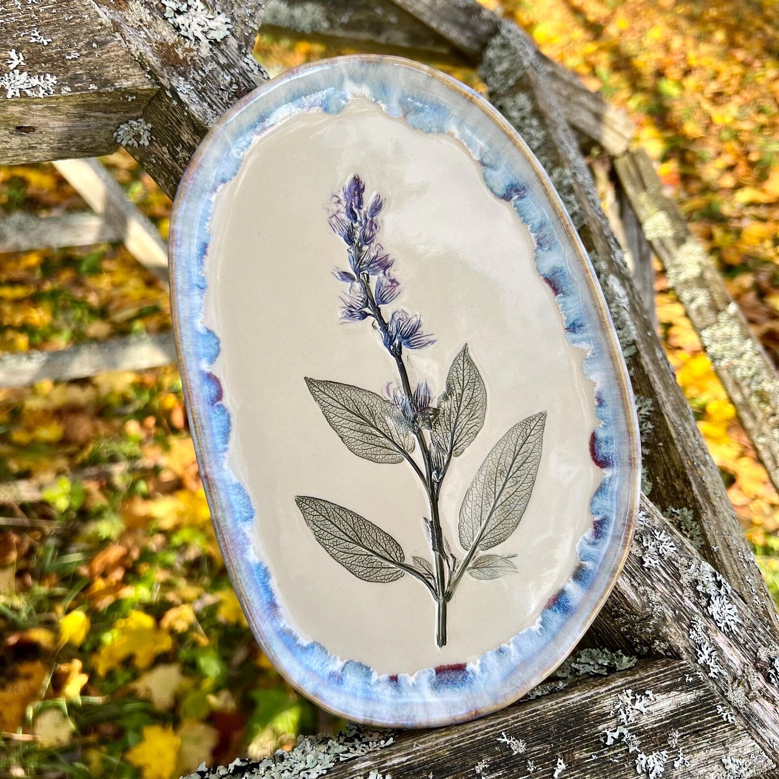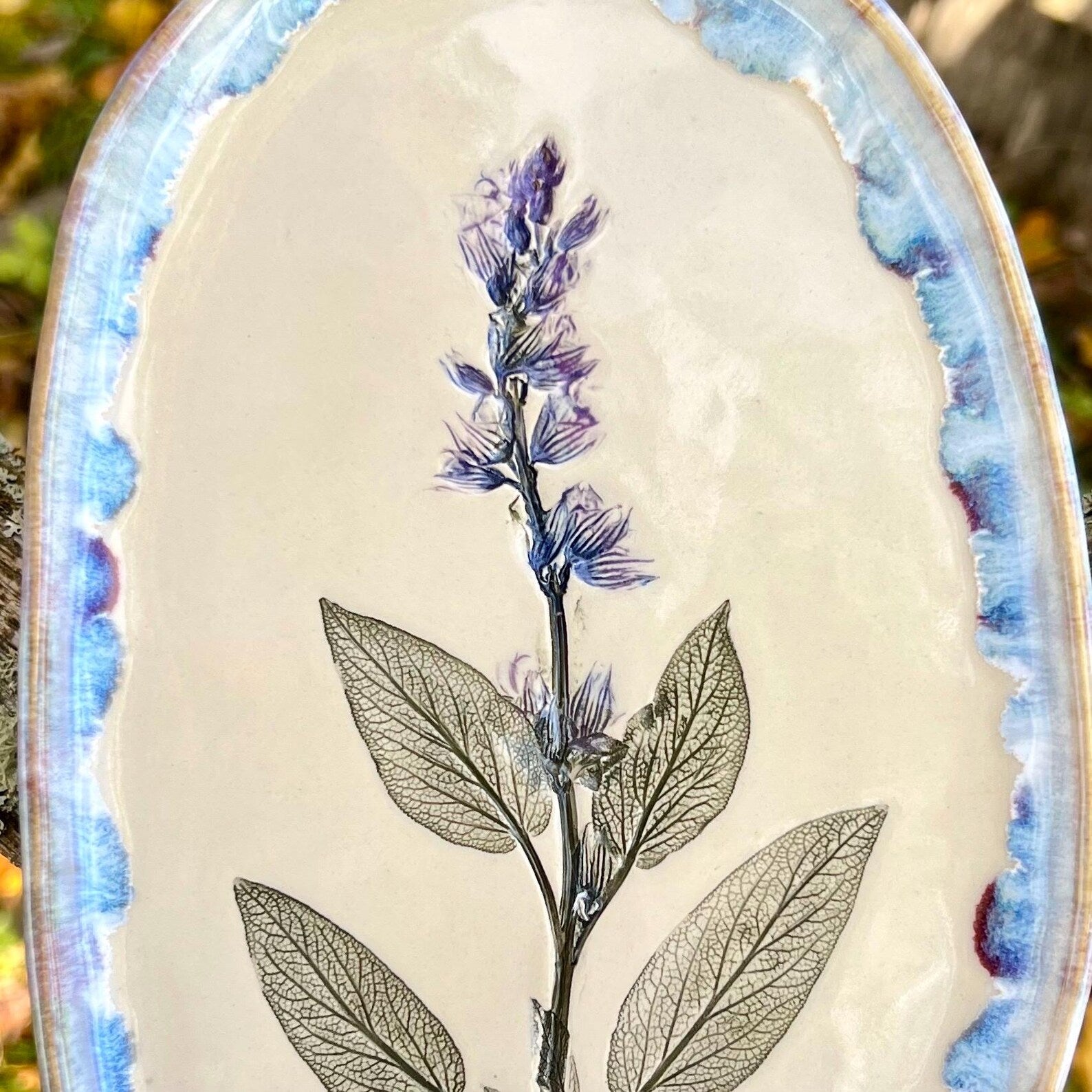 Ienesiet dabas skaistumu savā mājā ar šo servējamo šķīvi, kas rotāts ar ārstniecības salvijas dekoru.