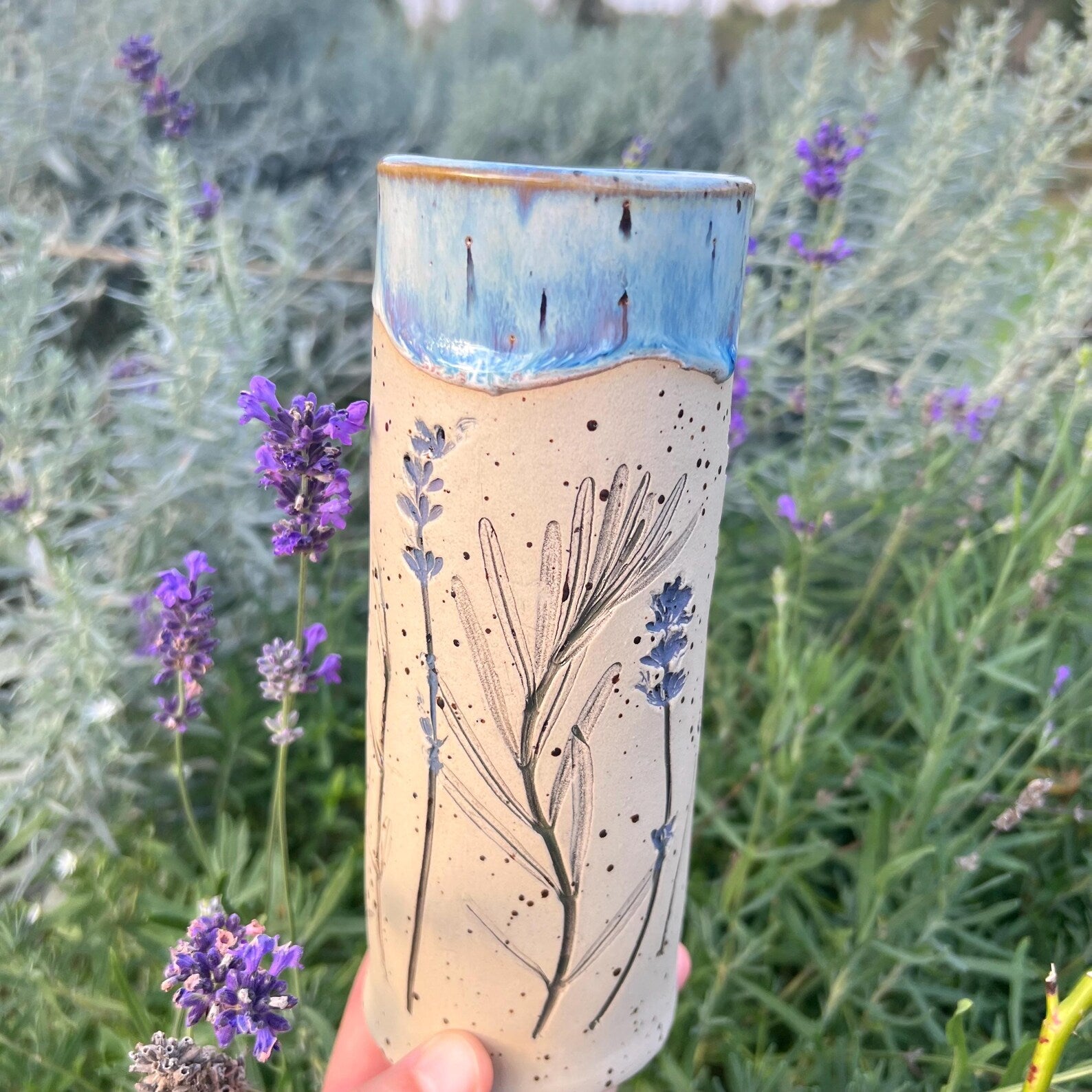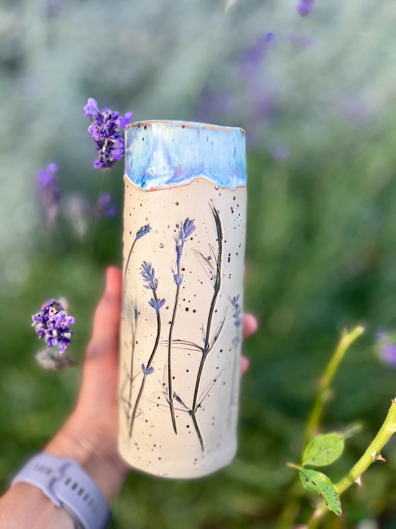 Cilindriskā Vāze ar lavandas atspiedumiem.